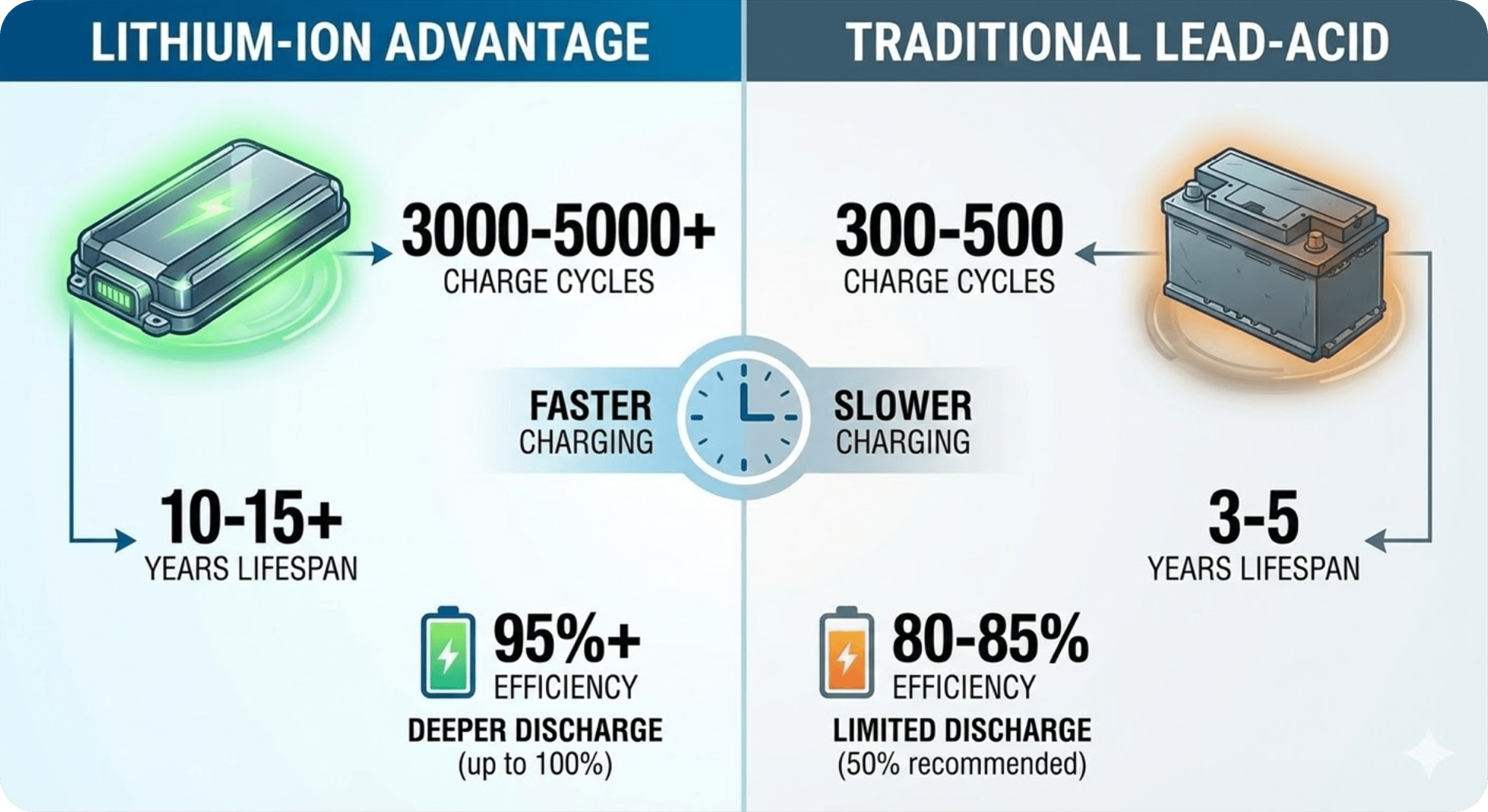 Lithvon lithium systems can reach full charge in just 4-5 hours, significantly reducing downtime during power outages.